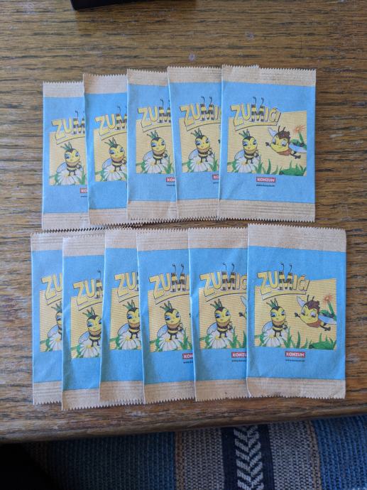 Imam 11 nikad otvorenih paketića sličica Zumića. Poklanjam ili (idealno) razmjenjujem za pokoju karticu ili paketić Šumastih.