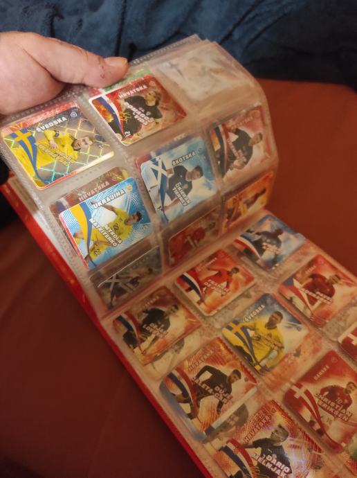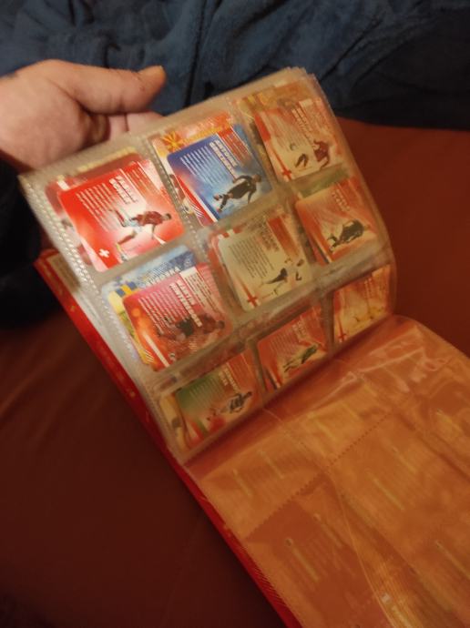 Album sa preko 100 kartica- SLICICA koje su posložene stim da svaka treća ima duplikat ili vise duplikata.Nefali puno da se album popuni,bio od sina ,a njega to više ne zanima pa je na prodaju.Saljem Poštom ili Tiskom ili u dogovoru sa kupcem molim vas da mi saljete poruke na Viber ili njuskalo,a za informiranje mozete i nazvati na broj 097-6601365.Album ocuvan i u odličnom stanju, POGLEDAJ slike!!