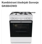 Gorenje štednjak - kombinirani plin +strujaLokacija: Osijek, SjenjakObjavljen: 19.01.2026.Spremi oglasKorisnik nije trgovac50 €