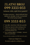ZLATNI BROJ 099 3333 033 jednom vidiš i pamtiš čitav životLokacija: Novi Zagreb - Zapad, LaništeObjavljen: 11.12.2025.Spremi oglasKorisnik nije trgovac3.500 €