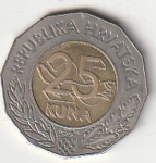 KOVANICA 25 KUNA 1997 REPUBLIKA HRVATSKA U O.U.N.Lokacija: Gornji Grad - Medveščak, CentarObjavljen: 15.11.2025.Spremi oglasKorisnik nije trgovac250 €