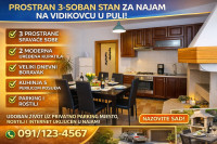 DUGOROČNI NAJAM stana u Puli – prostran i potpuno opremljen! Stan u kući, prizemlje Stambena površina: 109 m2Lokacija: Pula, VidikovacObjavljen: 03.02.2026.Spremi oglasKorisnik nije trgovac950 €