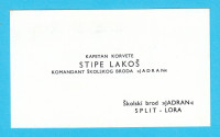 STIPE LAKOŠ - Komadant Školskog broda Jadran * vizitka vizit kartaLokacija: Split, PujankeObjavljen: 14.11.2025.Spremi oglasKorisnik nije trgovac39,95 €