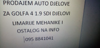 Golf 4 sdi branik zadnji i prednjiLokacija: Jastrebarsko, CentarObjavljen: 20.11.2025.Spremi oglasKorisnik nije trgovac70 €