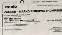 M.P. THOMPSON ARENA ZAGREB 27.12 PRODAJEM 5 VIP karata + STOLLokacija: Novi Zagreb - Zapad, LaništeObjavljen: 25.12.2025.Spremi oglasKorisnik nije trgovac1.000 €