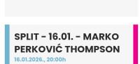 THOMPSON 2 ulaznice 16.01.2026. SplitLokacija: Šibenik, BaldekinObjavljen: 19.12.2025.Spremi oglasKorisnik nije trgovac80 €
