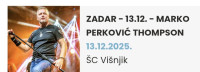 THOMPSON ZADAR VIŠNJIK Subota 13.12. PARTER 2 KARTELokacija: Zadar, RičinaObjavljen: 12.12.2025.Spremi oglasKorisnik nije trgovac40 €
