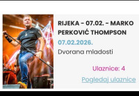 4 ulaznice za Thompsonov koncert 7.2.26 RijekaLokacija: Malinska-Dubašnica, RadićiObjavljen: 05.02.2026.Spremi oglasKorisnik nije trgovac160 €