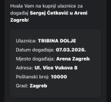 2 karte, Sergej Arena ZagrebLokacija: Split, PujankeObjavljen: 26.02.2026.Spremi oglasKorisnik nije trgovac60 €