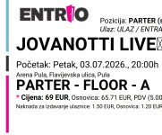 Jovanotti, Arena Pula 3.7.Lokacija: Novi Zagreb - Istok, SredišćeObjavljen: 06.03.2026.Spremi oglasKorisnik nije trgovac100 €