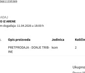 2x karte - gornje tribine - Jakov Jozinović, Arena ZagrebLokacija: Trešnjevka - Sjever, TrešnjevkaObjavljen: 24.03.2026.Spremi oglasKorisnik nije trgovac60 €
