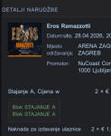 PRODAJEM KARTU ZA EROS RAMAZZOTTIJA 28.4.2026. U ZAGREBULokacija: Zaprešić, CentarObjavljen: 25.04.2026.Spremi oglasKorisnik nije trgovac70 €