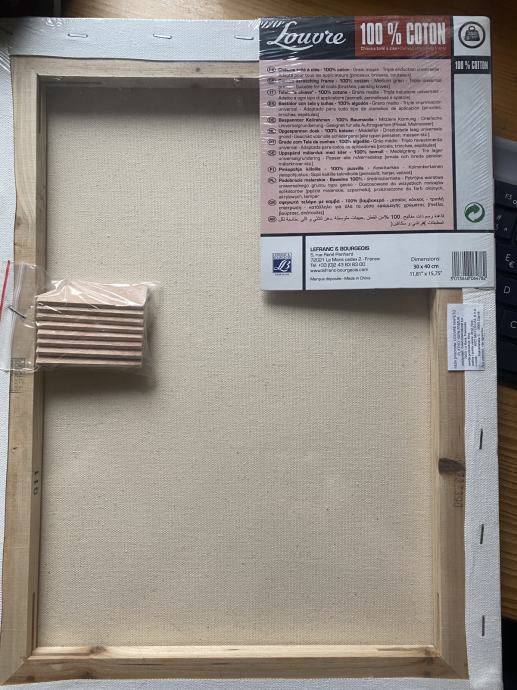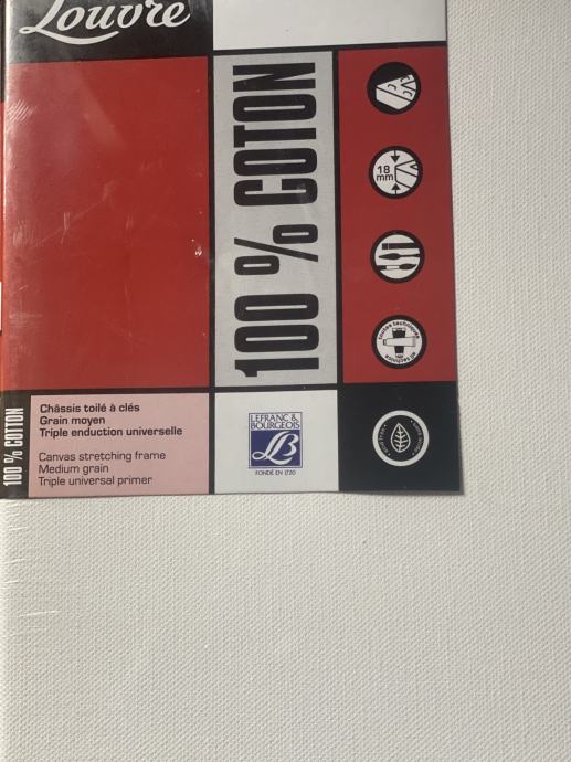 Prodajem četiri slikarska platna, nova, neraspakirana, "LOUVRE", 2 komada dimenzija 30x40 cm i 2 komada dimenzija 40x50 cm. Platna su 100% pamučna napeta na jelove letvice, zaklamana na poleđini, dvostruko su grundirana, srednje gruba tkanja, pakirana su u