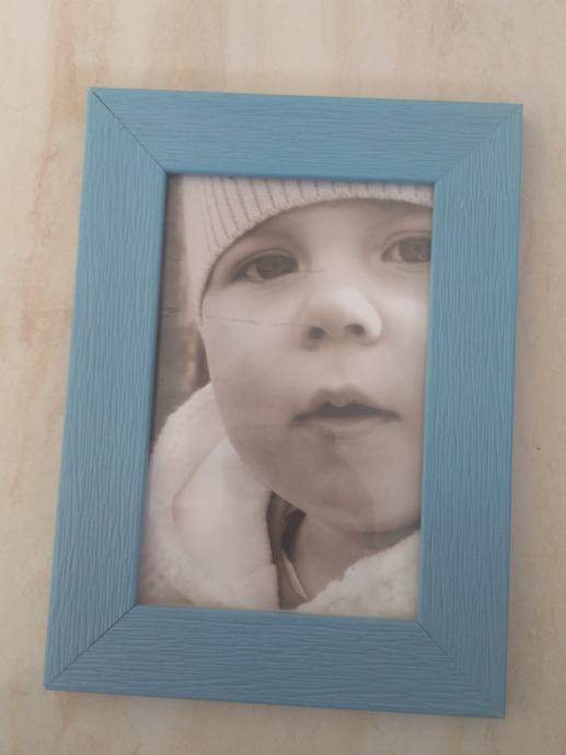 2. Plavi okvir sa fotkom ,sa staklom ,bez oštečenja ,13,5 x 8,5 cm ,širina okvira 2,5 cm