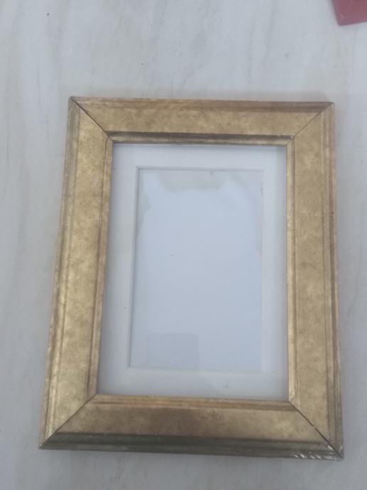 5. Žučkasti okvir sa staklom ,cca 18,5 x 13 cm , širina 3,5 cm,treba novi paspartu