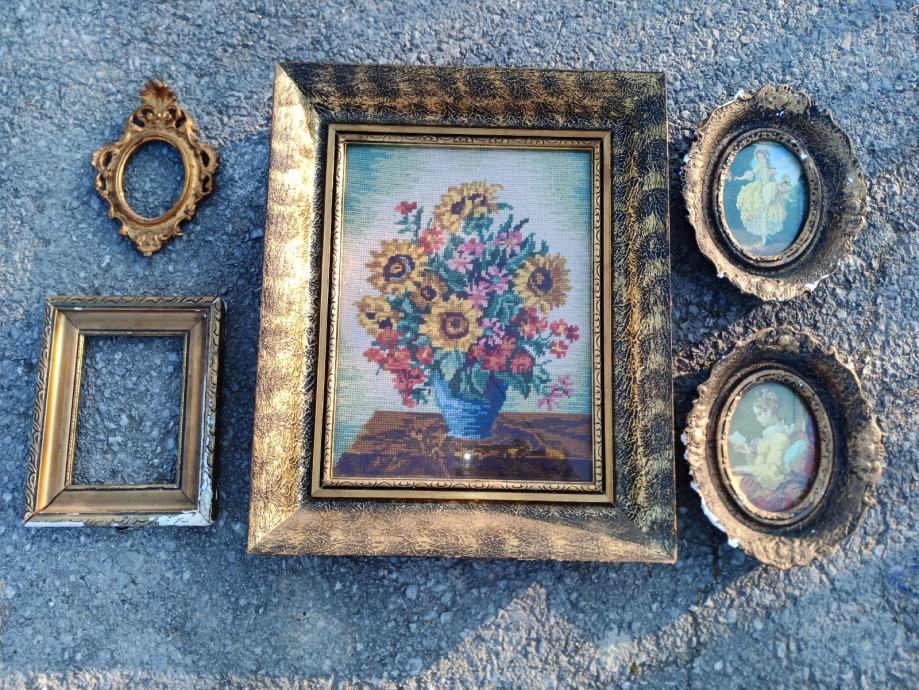 Slike i okviri na slici, neki stari 100 godina, reprodukcije, neke su oštećene, oko 50-60 komada, sve zajedno 150€
