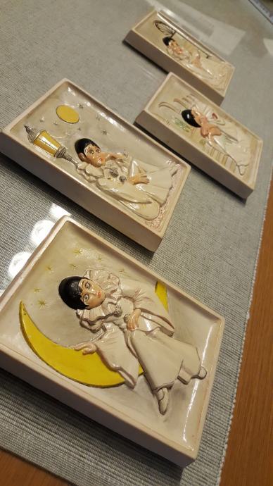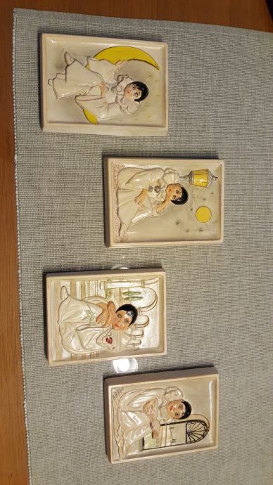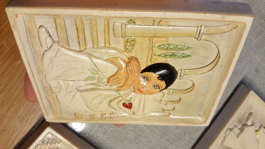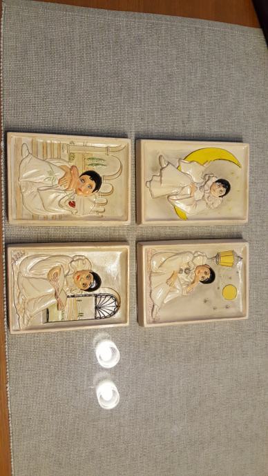 Prodajem 4 slike rucni rad 14x10 cm ,rucno oslikane ,kao nove, 4 kom 15 eura