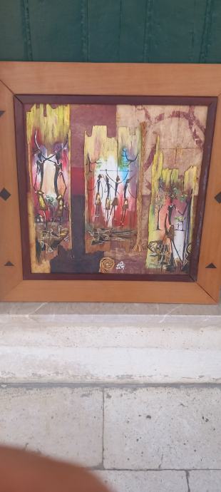 Slikanje na korištenje od drva . Dimenzije, sama slika 40X40, sa okvirom 55X55. Kontakt mail ili 0996629029