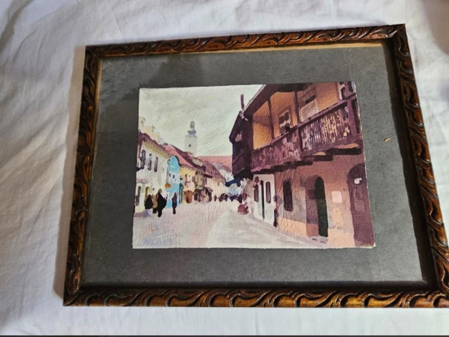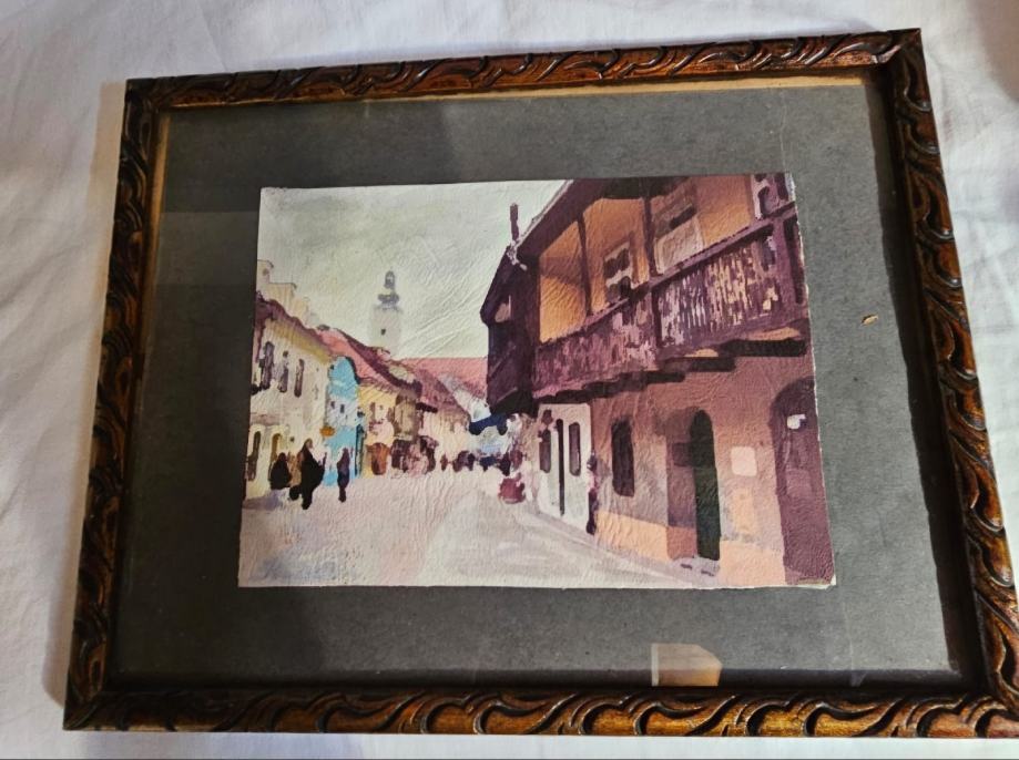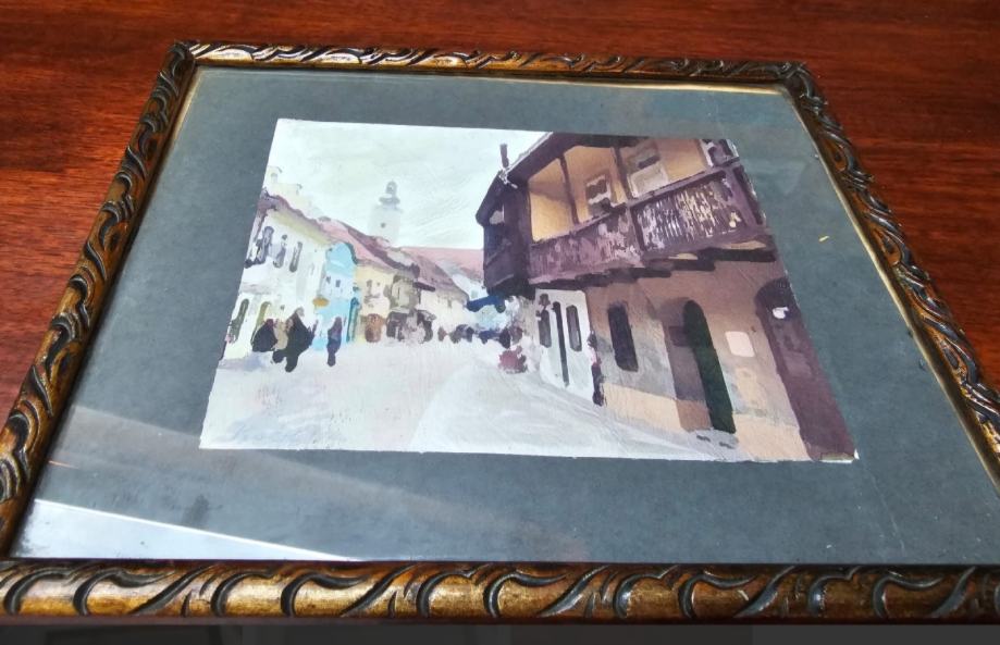 Prekresan akvarel "STARA TKALČIĆEVA", u NEOTVORENOM OKVIRU iz vremena, od rezbarenog hrasta.