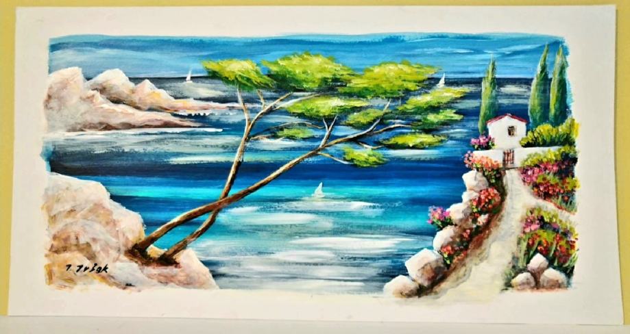 Prekrasan morski pejzaž slikara Ignaca Ivšak, u tehnici akrila na kartonu.