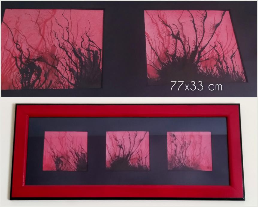 Akril na papiru, ručno rađeni drveni okvir po mjeri, ostakljeno