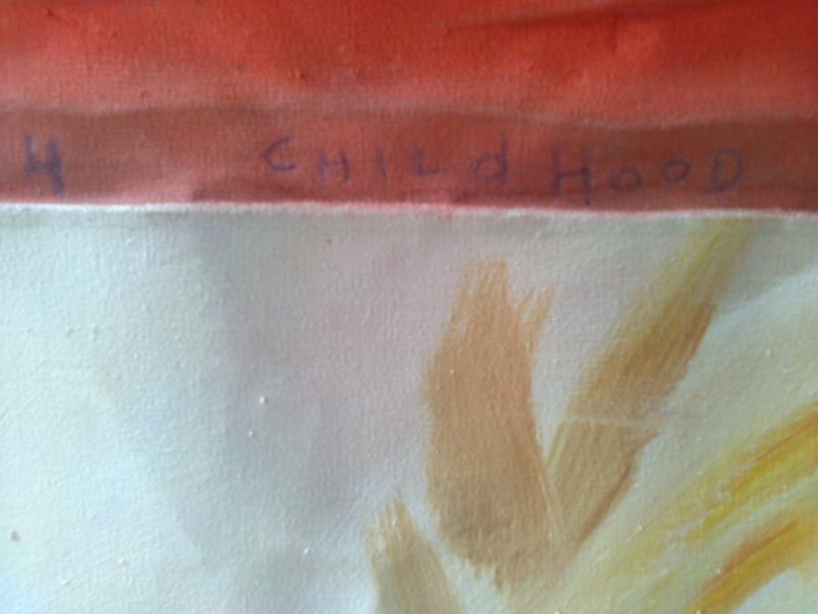 AKRIL NA PLATNU,DIMENZIJE 115x119 cm,NEPOZNAT AUTOR,STAROSTI OD 20-30 GODINA,SLIKA NEMA POTPISA NI MONOGRAMA,IZNAD SAME SIKE GORE PISE: CHILD HOOD,SLIKA JE PO MOME MIŠLJENJU NTERESANTNA,MOLIM IZVOLITE DONOSITI ZAKLJUCKE I POSMATRAJTE JE SVAK NA SVOJ NACIN,JER U RAZLICITOSTI JE LJEPOTA.