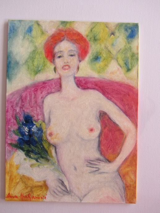 Akt, umjetnička slika, ulje na platnu, 16x22 cm, Ana Hreljanović