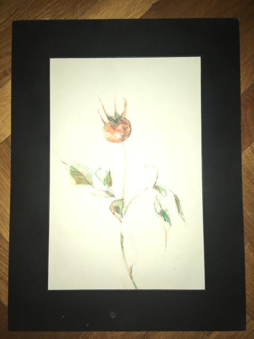 Izvrstan akvarel s motivom šipka. Nepoznati autor. Dimenzije lista bez paspartua su 35x25cm