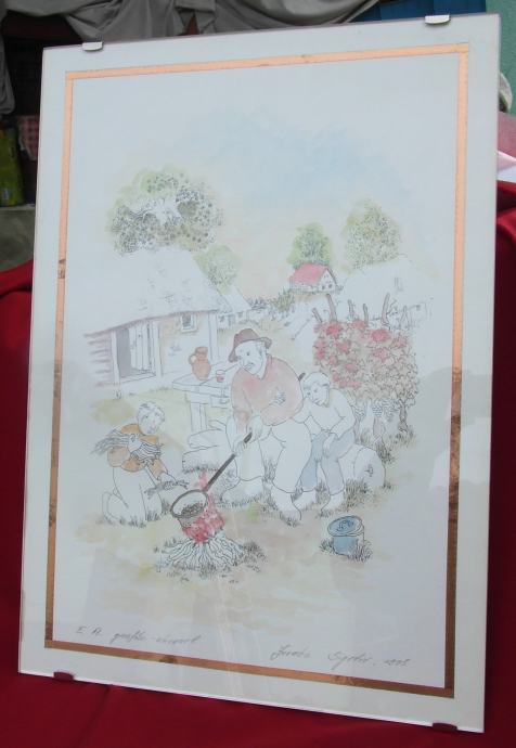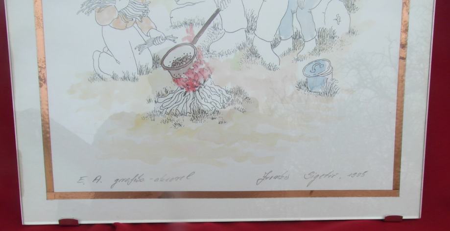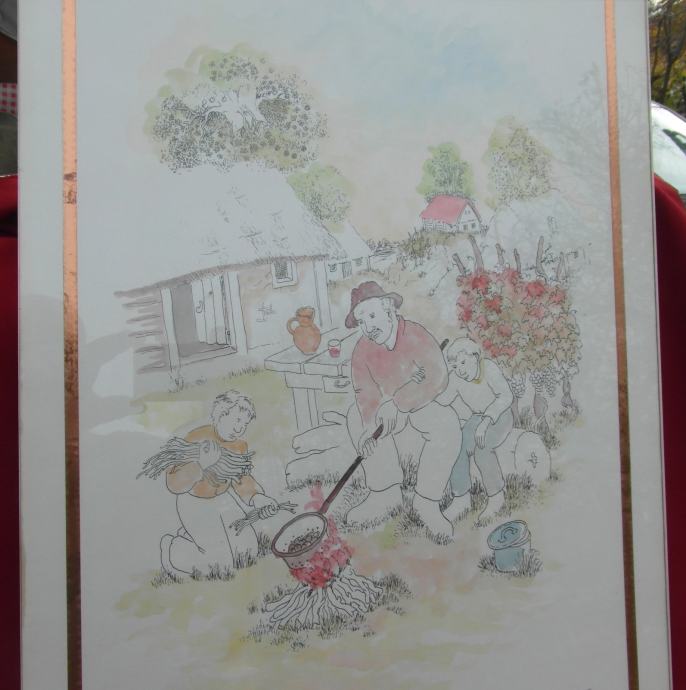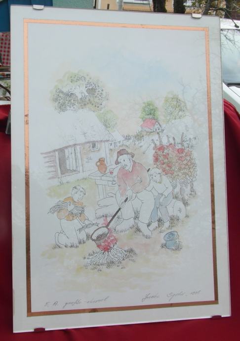 Grafika je u modernom staklenom okviru i dimenzije su 49 x 34,5 cm.