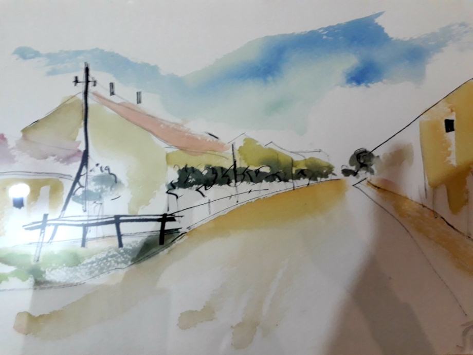 Akvarel amaterskog slikara dimenzija 50×40 cm.Uokviren i ustakljen.