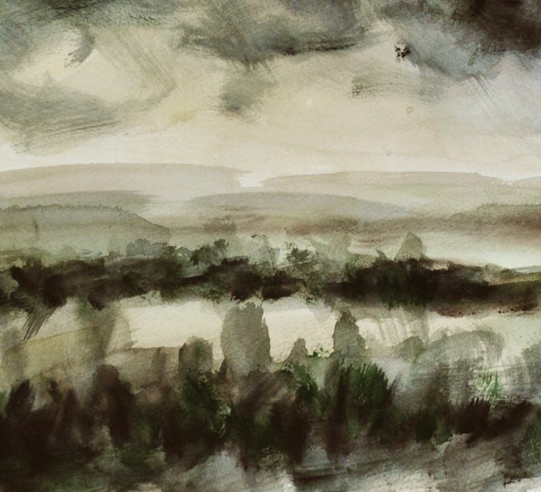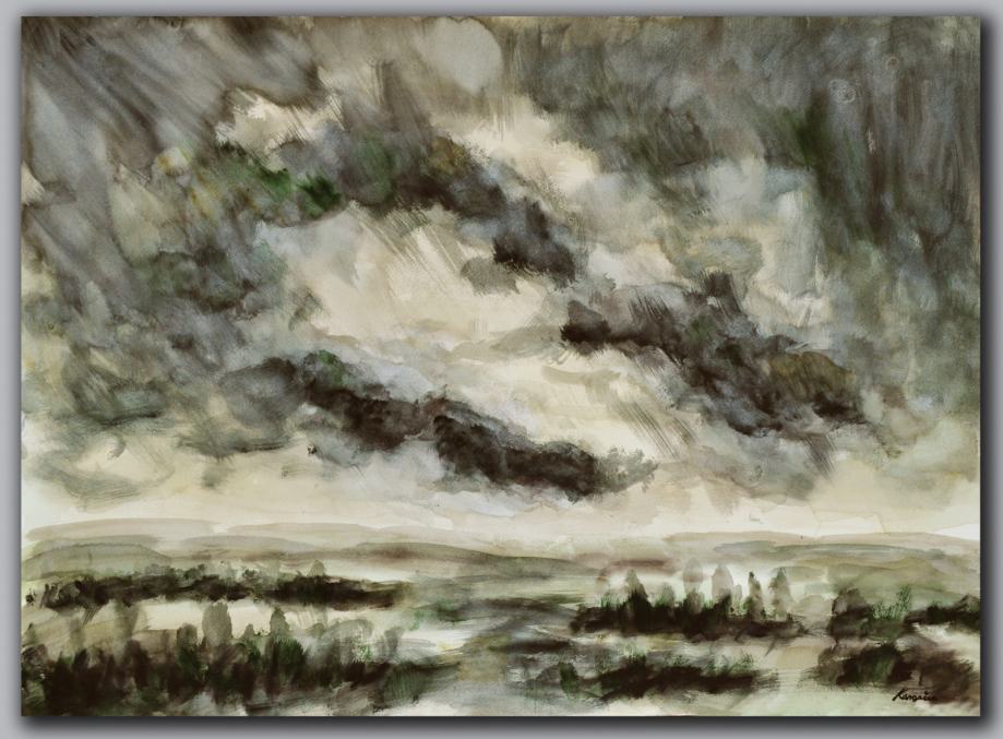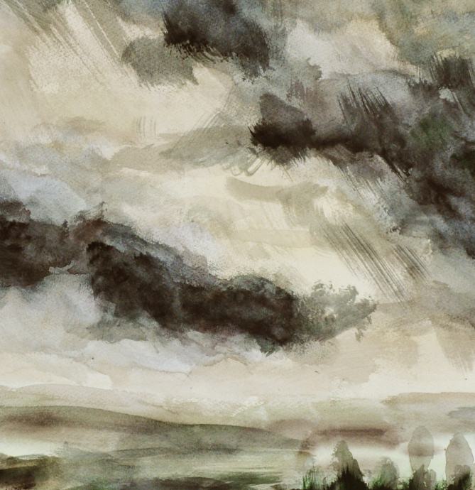Akvarel, pejzaž, originalna umjetnička slika, slikar, oblaci, nebo