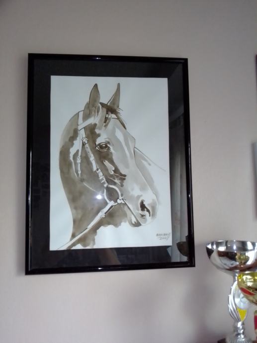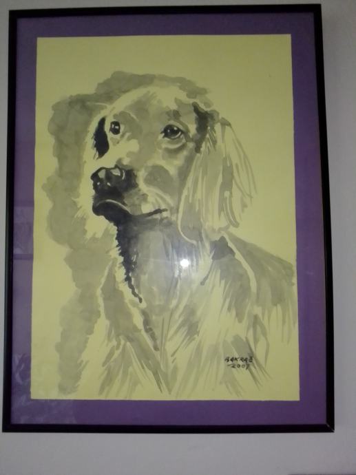 Akvareli slikara Bjelana Bakrača, konj dimenzije 38x50, pas 31x41. Pojedina slika je 500 kuna.
