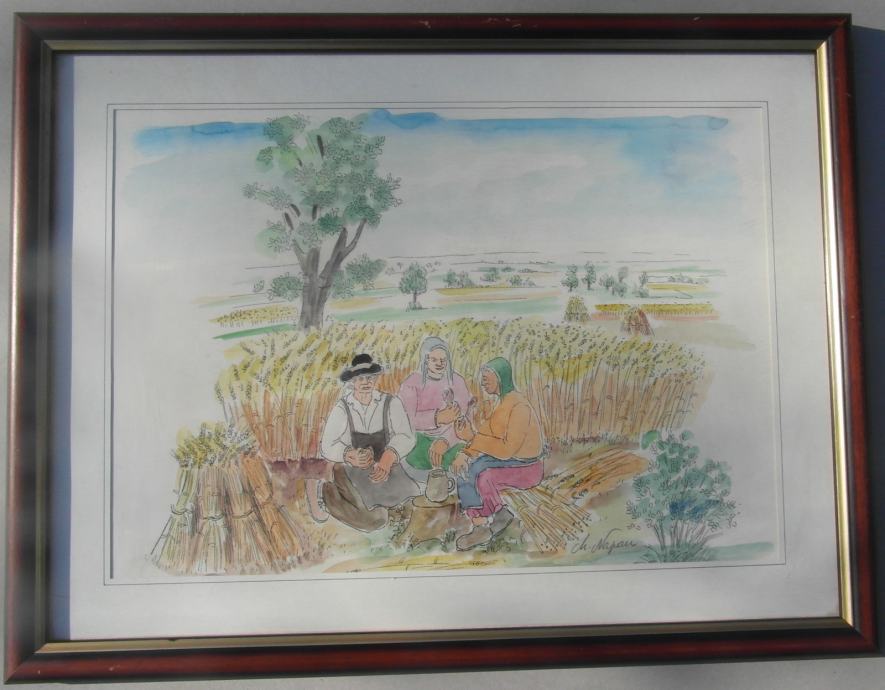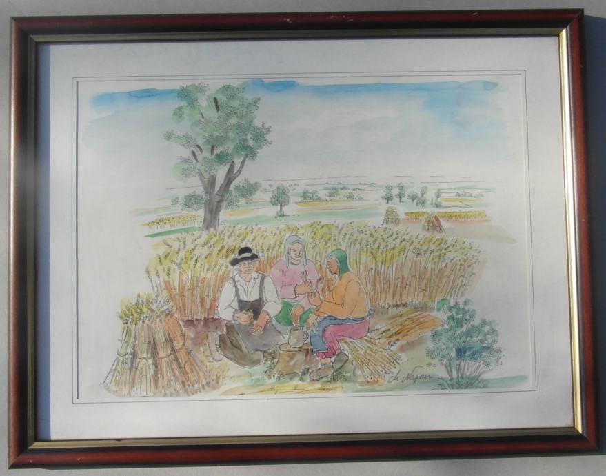 Akvarelirana grafika Koprivničkog slikara Marijana Napana "Obed"