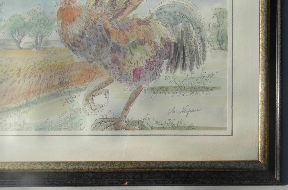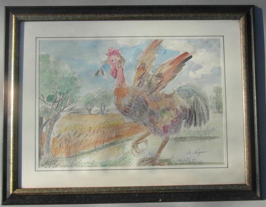 Akvarelirana grafika Koprivničkog slikara Marijana Napana "Pevec"