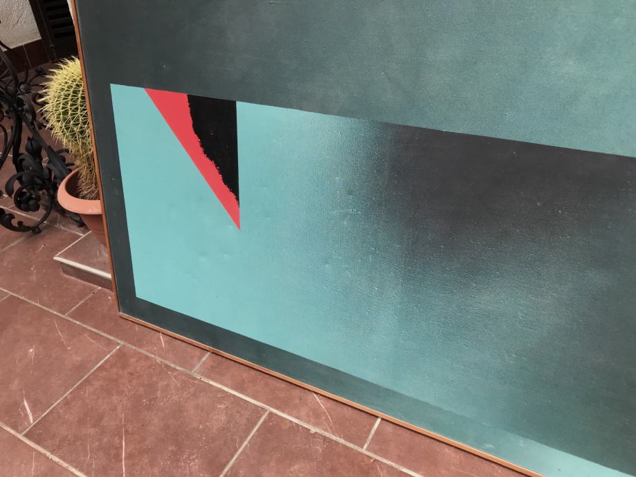 Slika ima nekoliko udubljenja na platnu te je stoga cijena vrlo niska.