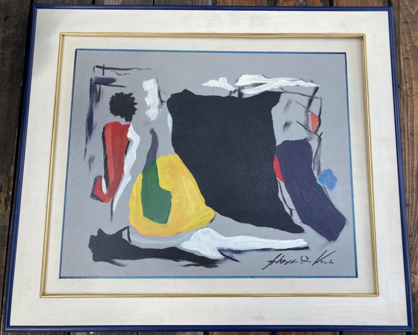 Apstraktni motiv njemačkog slikara. Ulje na lesonitu. Dimenzije s okvirom 70x60cm.