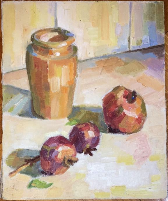 Mrtva priroda, akril na platnu (kaširano na lesonit). Dimenzije 52x43cm.