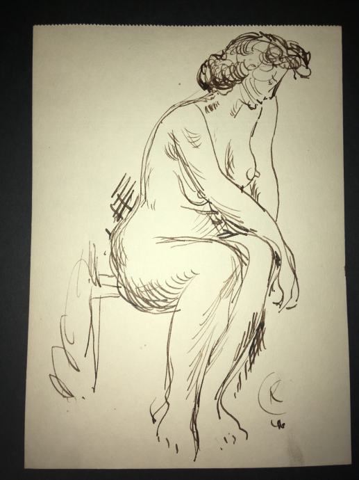 Crteži (ženski aktovi i dva muška portreta) čuvenog hrvatskog slikara Ante Kumana. Tehnika lavirani tuš. Dimenzije 21x15cm (x9) i 16x14cm (x2). Pojedinačna cijena aktova je 900kn, a portreta 500kn.