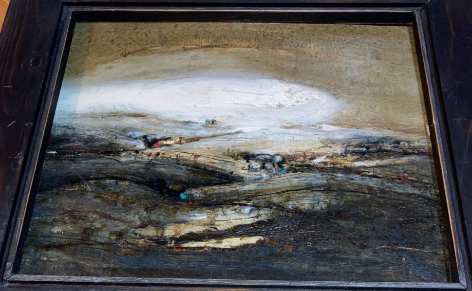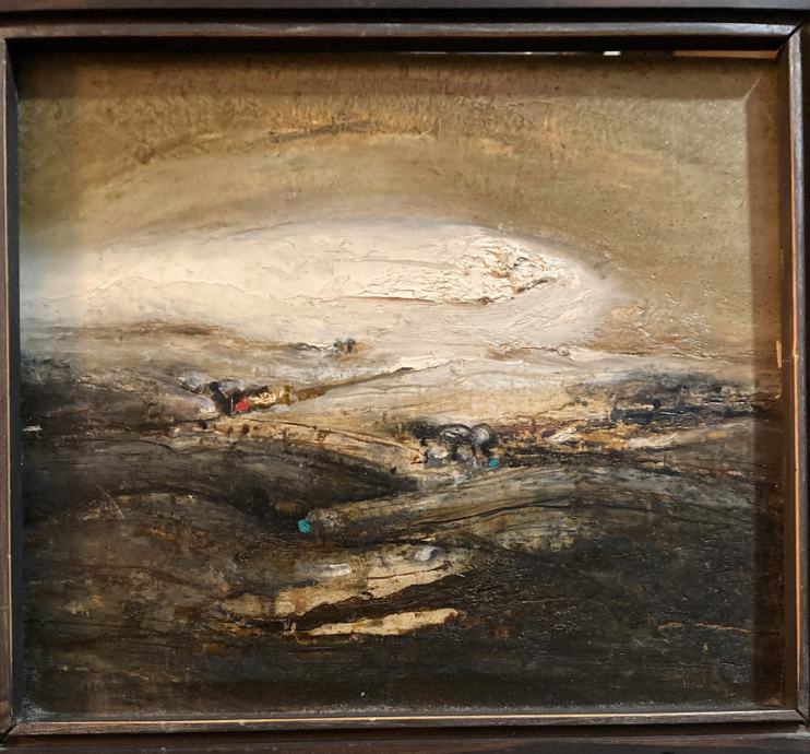 Izvrsno ulje na lesonitu poznatog splitskog slikara i kipara Ante Mandarića (1948 - 2016.g.). Debeli namazi boje. Stilom slika dosta podsjeća na čuvenog hr umjetnika, Ljubu Ivančića. Dimenzije s okvirom 33x30cm (sama slika 25x21cm).