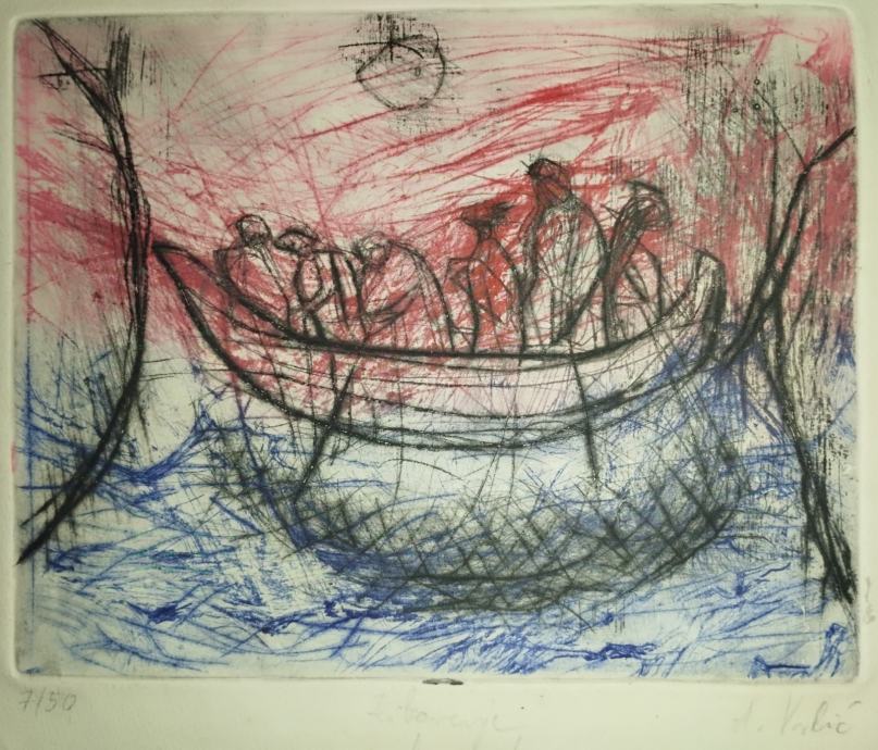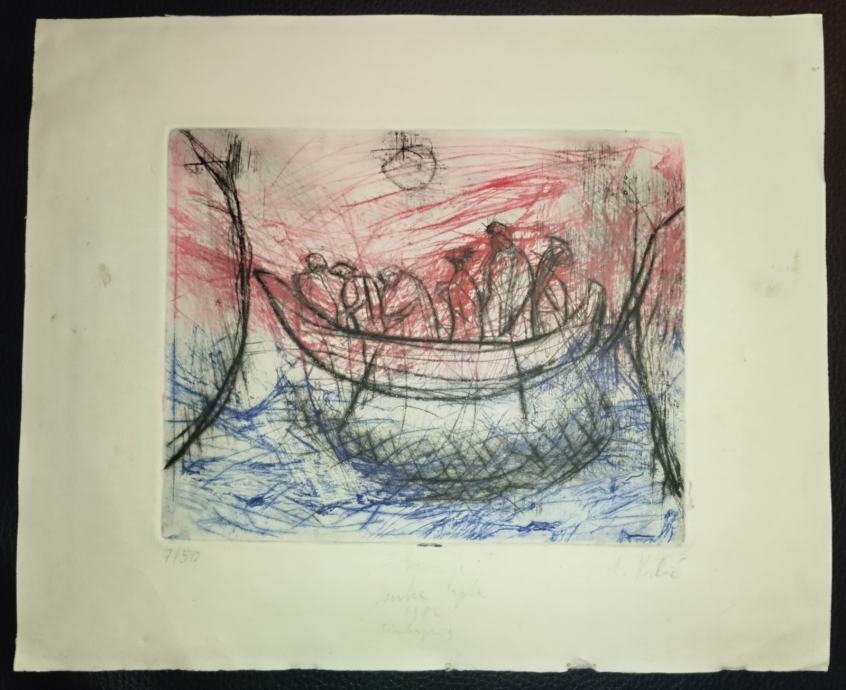 Anton Vrlić - grafika (suha igla/ bakropis) iz 1986. Dimenzije lista 31x25cm. Akademski slikar.