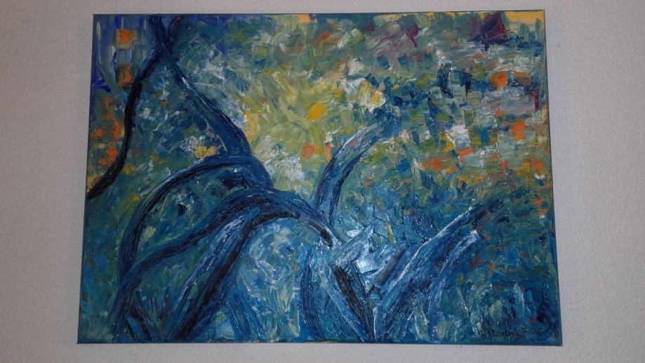Apstraktna slika je slikana inspiracijom tamarisa, bogati su nanosi boja, boje koje su korištene su van gogh marke.