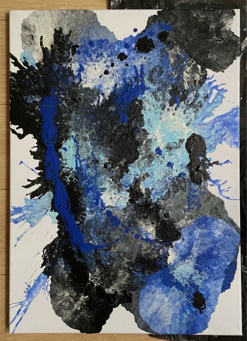 Prodajem vlastitu apstraktnu sliku na platnu dimenzija 50x70cm. Medij je kombinirane tehnike (akril, ljepilo, lak). Moguća besplatna dostava na području grada Zagreba. Za sva pitanja i dogovore molim isključivo putem SMS poruka na broj 095 819 2165. Cijena slike je 350 kuna uz mogući dodatni dogovor.