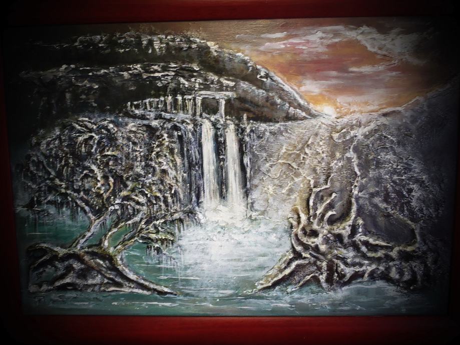 Kombinirana tehnika glinamol - akril na drvetu, 75 x 55 cm.