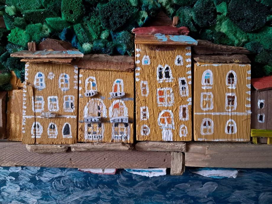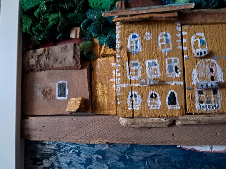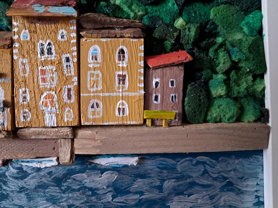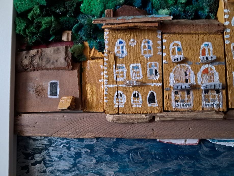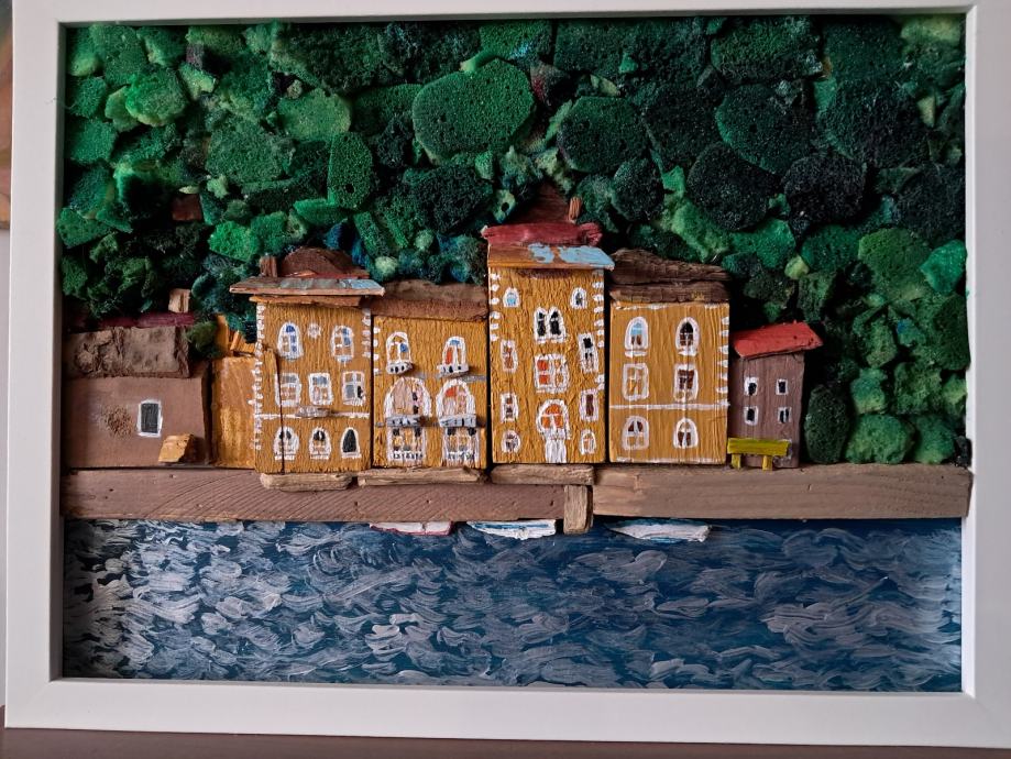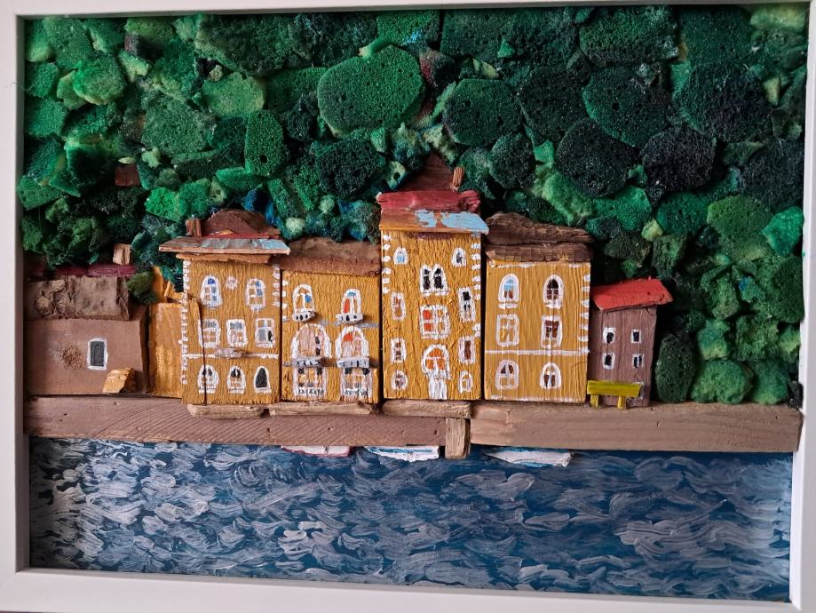Ova lijepa slika izrađena je od komada naplavina i obojana akrilnim bojama.Sjećanje na jedan od Hrvatskih najstarijih gradića bila je inspiracija za ovu sliku.Dimenzije slike su 32 × 42 cm.