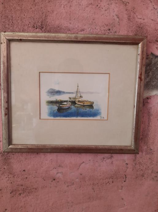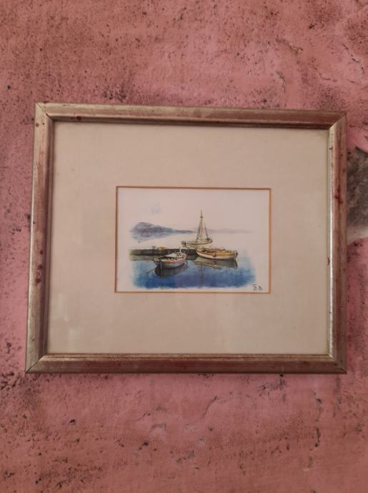 barčice u luci, rađeno akvarelom, dimenzije vanjska 21x25, a unutarnja 9x12,5, vidi slike