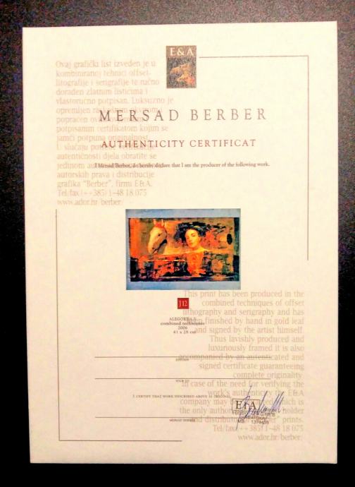 Potpisan i popraćen certifikatom firme E&A jedinog ovlaštenog distributera