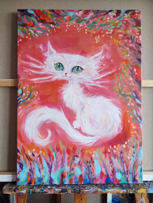 Slika ''Bijela mačka'' je autorski rad umjetnice Koraljke Polaček.