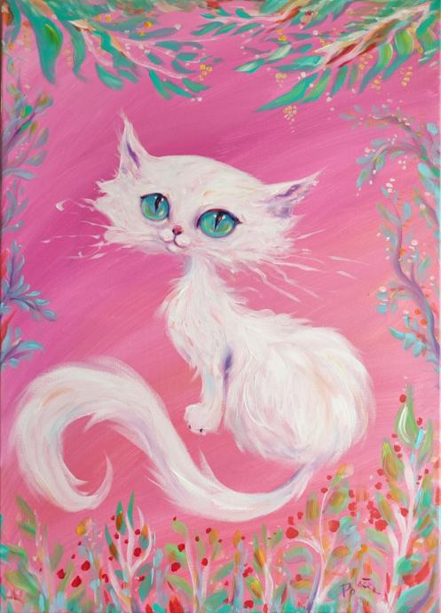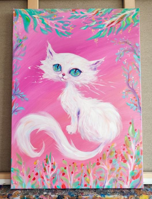 Iz ciklusa ''mačkoslike'', u vrlo prepoznatljivom stilu autorice. Slika je vrlo specifična i izražajna, obojana ljubavlju prema macama.