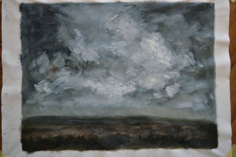 Prodajem umjetničku sliku ulje na platnu. Slika predstavlja impresionistički pejzaž - bijele oblake.