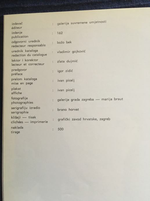 Nepotpisana originalna serigrafija poznate hrvatske akademske slikarice Biserke Baretić, koja je bila dio kataloga izložbe održane u Galeriji suvremene umjetnosti u Zagrebu, 1970.g. Katalog je izdan u 500 primjeraka (tiskan u Grafičkom zavodu Hrvatske), a serigrafija je rađena u čuvenom studiju Brane Horvata, u kojemu su svoje grafike radili gotovo svi najznačajniji hrvatski umjetnici druge polovice 20. stoljeća. Dimenzije serigrafije su cca 21x20cm.